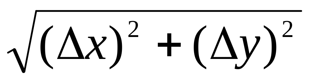 Обозначим приращение аргументов х и у при переходе из точки Р в точку Р1 через Δх и Δу: Δх = х1 − х, Δу = у1 − у. Следовательно,
