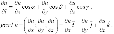 Аналогично определяется производная по направлению и градиент функции трех переменных u = f(x; y; z):