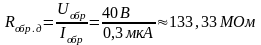 Рассчитать Rобр.д для диода КД209Б при Uобр = 40 В и сравнить с рассчитанной величиной Rпр.д. На обратной ветви ВАХ КД209Б (см.рисунок. 1.3) находим: Iобр = 0,3мкА при Uобр =40В.