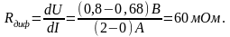 Дифференциальное сопротивление находим как котангенс угла наклона касательной, проведенной к прямой ветви ВАХ в точке Iпр= 2А