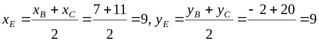 Используя уравнение прямой, проходящей через две точки, получим уравнение медианы :