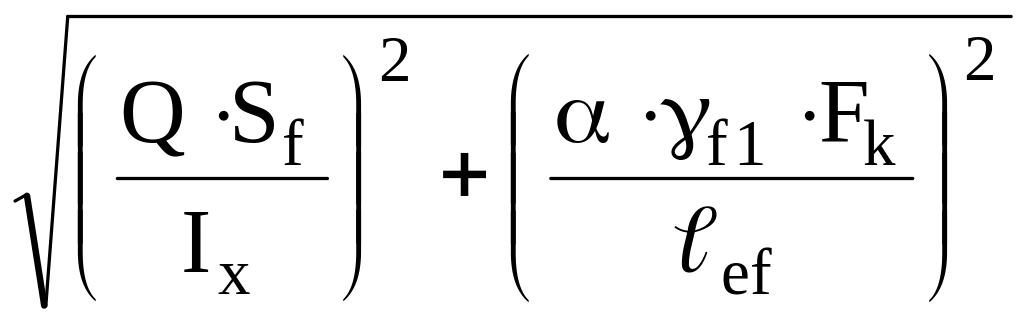 Соединения поясов со стенкой кроме сдвигающих усилий воспринимают сосредоточенное усилие от колеса крана Fк, поэтому проверка производится по результирующему напряжению