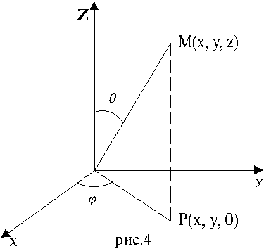 Цилиндрические координаты представляют соединение полярных координат в плоскости xy с обычной декартовой аппликатой z (рис. 3).