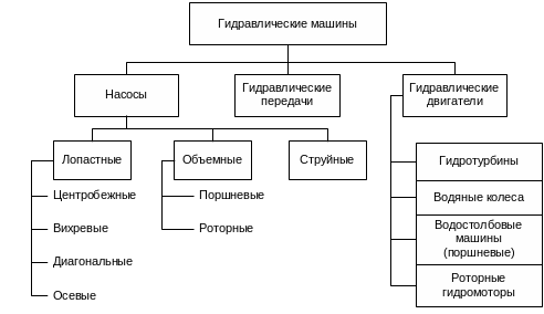 Гидравлическими называют машины, которые сообщают протекающей через них жидкости механическую энергию (насосы), либо получают от жидкости часть энергии и передают ее рабочему органу для полезного использования (гидродвигатели).