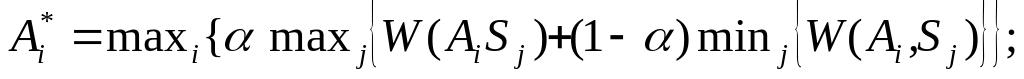 maxi (α maxj [W(AiSj)]+ + (1- α) mini [W(AiSj)] |