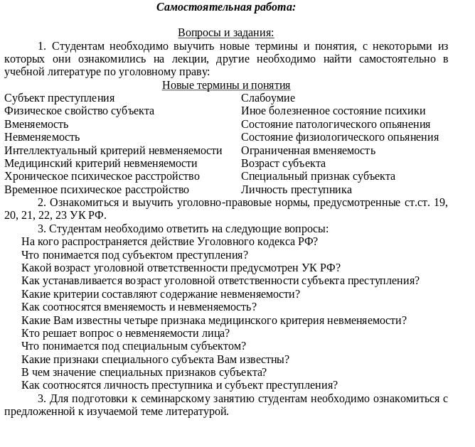 - •9. Перечень вопросов для подготовки к промежуточной аттестации (зачету) по первому разделу курса (по Общей части уголовного права):