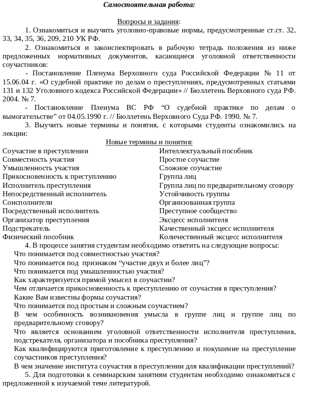 - •Перечень вопросов для подготовки к промежуточной аттестации (экзамену) по полному курсу уголовного права: