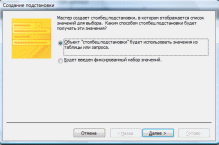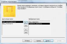 На третьем шаге нужно выбрать поля для подстановки. Обязательно выбирается ключевое поле и то поле, значения которого вы хотите видеть при подстановке. В данном случае выбираем поля Код_предмета и Название_предмета (рис 4.3).