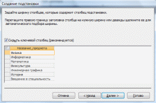 На пятом шаге задается подпись столбца (назовем его Предмет). Если все шаги Мастера пройдены и нет необходимости возвращаться назад, то нажмите кнопку Готово (рис. 4.5).