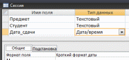 Дата_сдачи. Дата сдачи зачета или экзамена. Тип данных для этого поля – Дата/время. В свойствах поля на вкладке Общие необходимо выбрать формат поля – Краткий формат даты (рис. 6).
