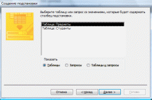 На втором шаге необходимо выбрать таблицу для подстановки (в данном случае это таблица Предметы) (рис. 4.2).