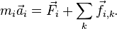 Внешние силы — силы, действующие со стороны тел, не входящих в рассматриваемую систему. Равнодействующую внешних сил, действующих на материальную точку с номером i обозначим