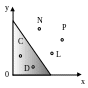 N,L,P – предпочтительны для потребителей, но они не достижимы.C,D – достижимы, но менее предпочтительны, т.к. будет образовываться экономия, нерационально тратим доход.Бюджетная линия – геометрическое место точек, характеризующее все наборы товаров, которые может приобрести потребитель, полностью израсходовав свой доход при данных ценах на товар x & y.