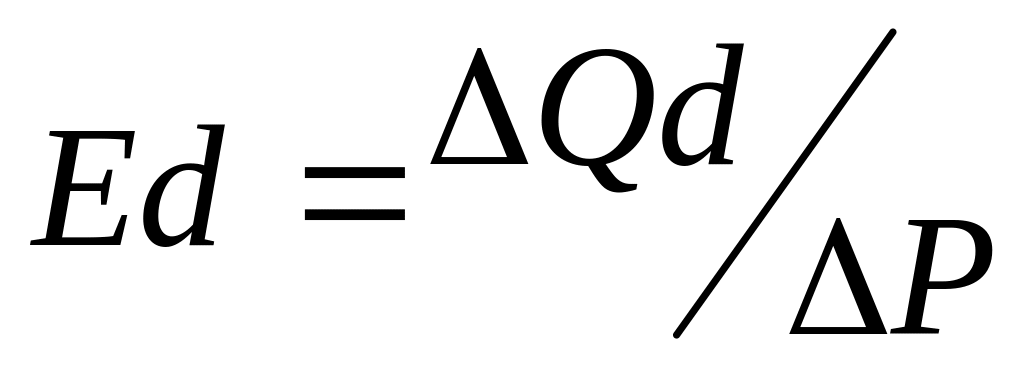 Эластичность спроса по цене,– показывает степень воздействия изменения цены на изменение количества товаров, на которые предъявлен спрос. Она определяется как отношение процентного изменения количества продукции (∆Qd), на которую изменяется спрос, к процентному изменению цены (∆P):
