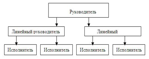 1) В линейной структуре управления, которая представлена на рисунке 2, каждый руководитель обеспечивает руководство нижестоящими подразделениями по всем видам деятельности. Достоинство - простота, экономичность, предельное единоначалие. Основной недостаток - высокие требования к квалификации руководителей. Сейчас практически не используется.26