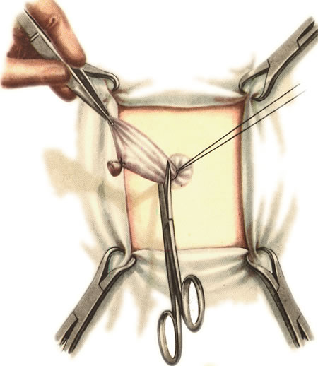 62. Операция при эмбриональной грыже. Перевязка и отсечение грыжевого мешка.