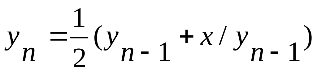 Мұндағы, yn-1-алдыңғы түбірге жақындау (басында есептеулер озбырлықпен таңдалады). yn- кейінгі жақындау. Жақындаулар абсолюттік шамаға қарағанда, шамаға берілген дәлдіктері бір бірінен ерекшелене бастаған кезде есептеулер процесі тоқталады. Абсолюттік шамаларды есептеу үшін fabs( ) стандартты функциясы пайдаланылады.