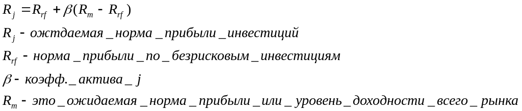 Модель утверждает , что ожидаемый доход требуемый инвесторам равен ставке безрисковой ценной бумаги плюс рисковая премия.