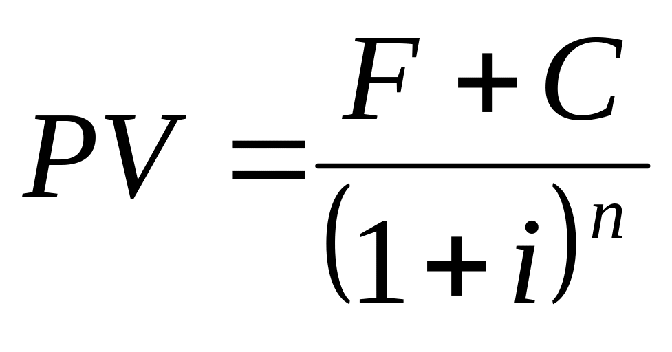 Тобто поточна реальна вартість облігації з виплатою всієї суми відсотків при її погашенні дорівнює сумі номіналу облігації та всіх відсотків по облігації, приведених до дійсної вартості за дисконтною ставкою, рівною очікуваній нормі інвестиційного прибутку.