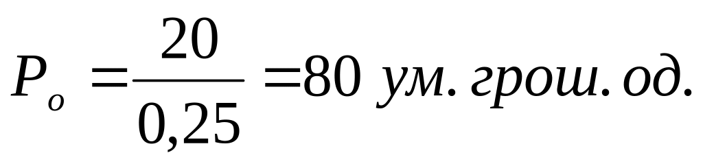 Приклад 32. По акції виплачується щорічний дивіденд у сумі 20 ум. грош. од. Очікувана норма поточного прибутку акцій даного типу становить 15% на рік.
