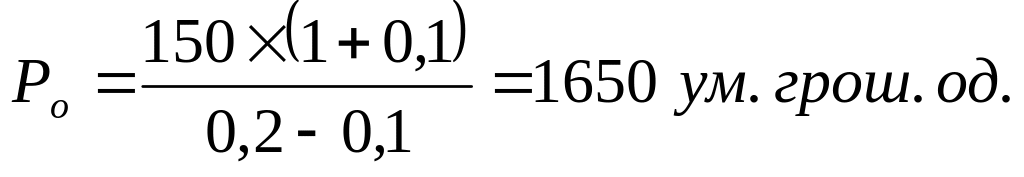Приклад 33. Останній дивіденд, що був виплачений по акції, склав 150 ум. грош. од. Компанія постійно збільшує суму щорічно виплачуваних дивідендів на 10%. Очікувана норма прибутку акцій даного типу складає 20% на рік.