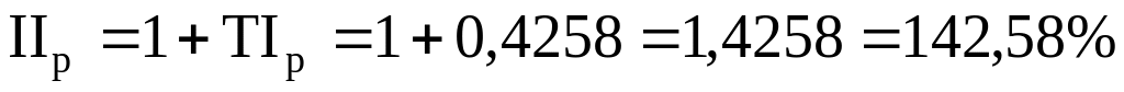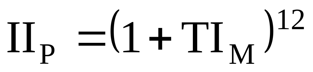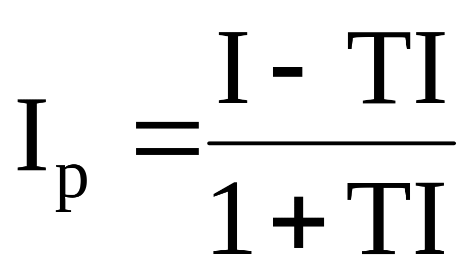 де Ір– реальна відсоткова ставка (фактична або прогнозна на певний період); І – номінальна відсоткова ставка (фактична чи прогнозна на певний період); ТІ – темп інфляції (фактичний або прогнозний на певний період).
