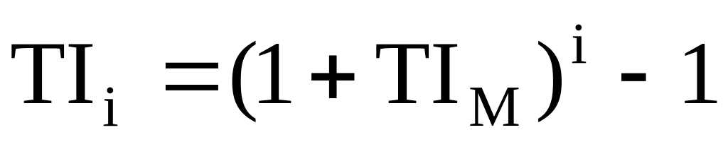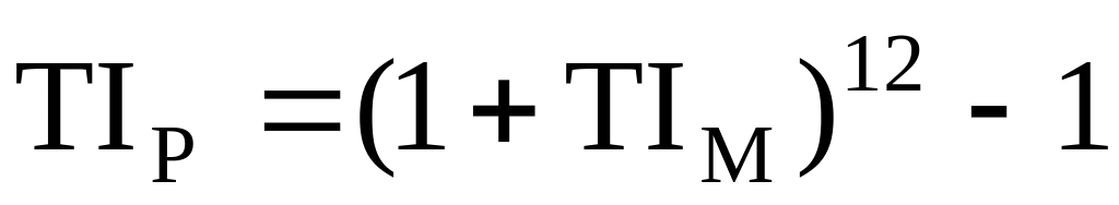 За формулою (19) можна розрахувати темп інфляції на кінець будь-якого місяця року