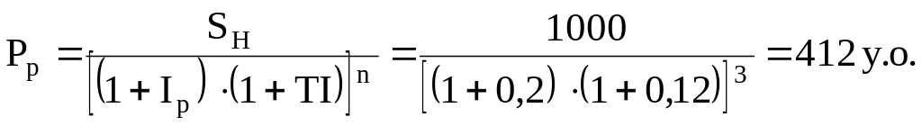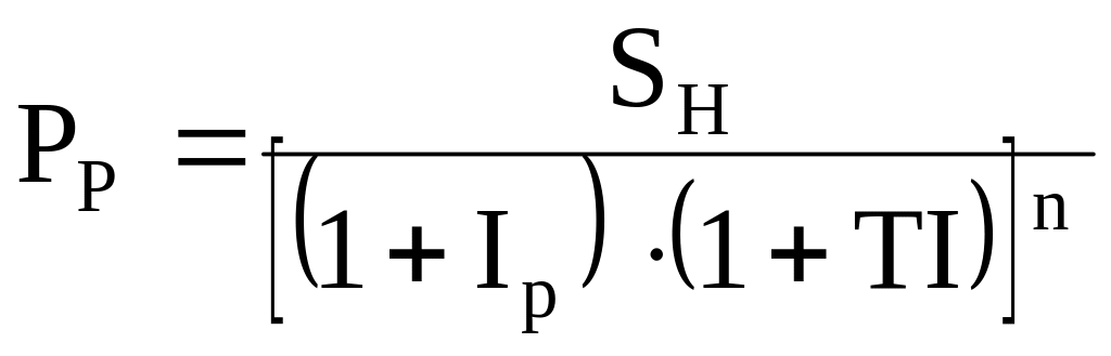 де РР – реальна поточна сума вкладу (грошей) з урахуванням фактора інфляції; SН – очікувана номінальна майбутня вартість вкладу (грошей); ІР – реальна відсоткова ставка, яка використовується в процесі дисконтування вартості.