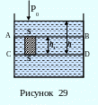 Для несжимаемой жидкости плотность постоянна по всему объёму. При поперечном сечении S столба жидкости, его высоте h и плотности сила давления на слой CD, находящийся на глубине h, (рисунок 29) находится по формуле: