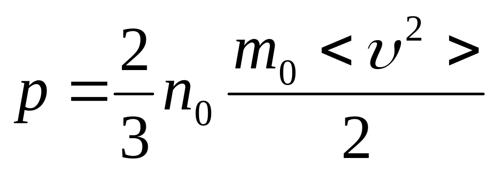 Уравнение (4.7) - основное уравнение молекулярно-кинетической теории. Таким образом, давление р, оказываемое газом на стенки сосуда, определяется: числом молекул n0 в единице объема, массой молекул т0 и средним значением квадратов их скоростей < υ2 >. Формуле (4.7) можно придать иной вид, поделив и помножив ее правую часть на 2, тогда