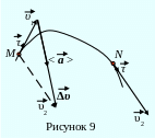 точку N. При этом скорость её изменилась от до (рисунок 10). Мгновенное ускорение, например, в точке М: