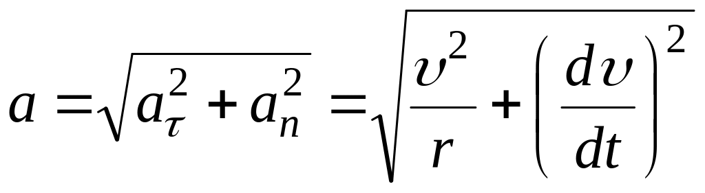 Полное ускорение тела есть геометрическая сумма тангенциальной и нормальной составляющих ускорения (рисунок 11):