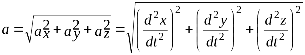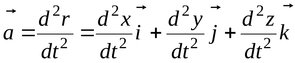 Согласно уравнению (3.20) вектор мгновенного ускорения равен первой производной от вектора скорости по времени или второй производной от вектора перемещения по времени. Подставляя в формулу (3.20) выражение (3.5), получим формулу ускорения в координатной форме:
