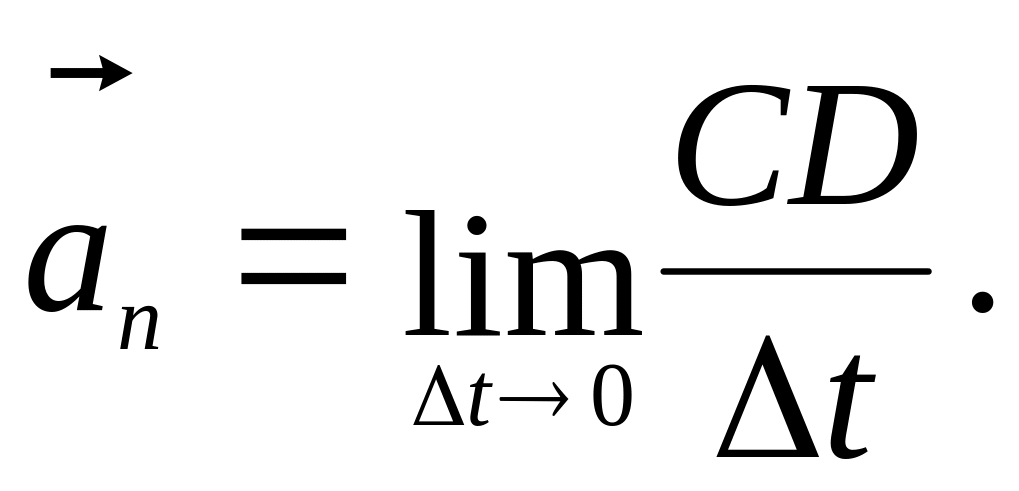 вектор характеризует изменение направления скорости за время Δt. Для определения величины и направления этой составляющей ускорения