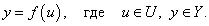 Представим теперь, что на множестве U задана другая функция f, которая отображает множество U в Y: