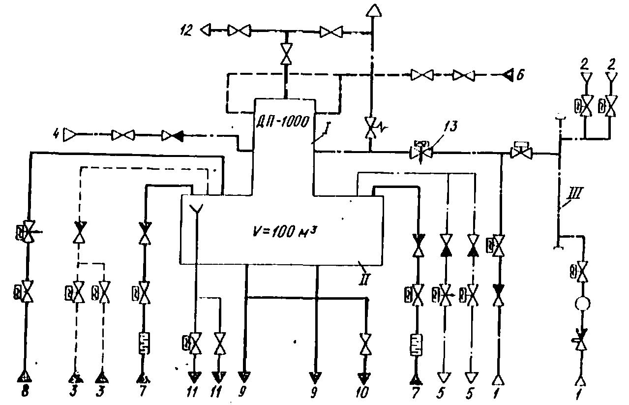 9 - питательная вода от узла впрысков; 10 - линия рециркуляции ПТН; 11 - линия рециркуляции предвключенных насосов; 12 - опорожнение и перелив из бака-аккумулятора;