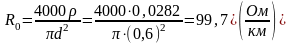 Теперь рассчитаем сопротивление цепи кабеля постоянному току ([2], 1.2)