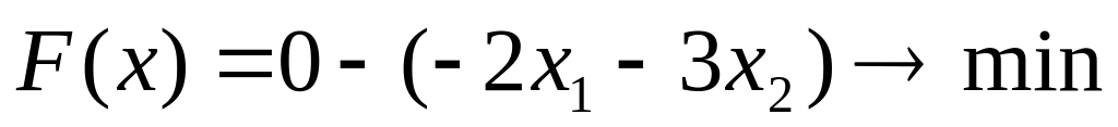 Пример 5.5. Решить вышеприведенную задачу линейного программирования при условии, что целевая функция минимизируется: