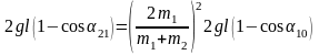 Так как величинами, которые будут измеряться в опытах, являются не скорости, а максимальные углы отклонения подвесов шаров от положения равновесия, получим формулы для углов отклонения каждого из шаров после первого удара, используя полученные выражения для скоростей (4.10) и (4.11).