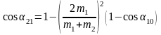 После сокращений и преобразований получим рабочую формулу для косинуса максимального угла отклонения подвеса первого шара после первого удара: