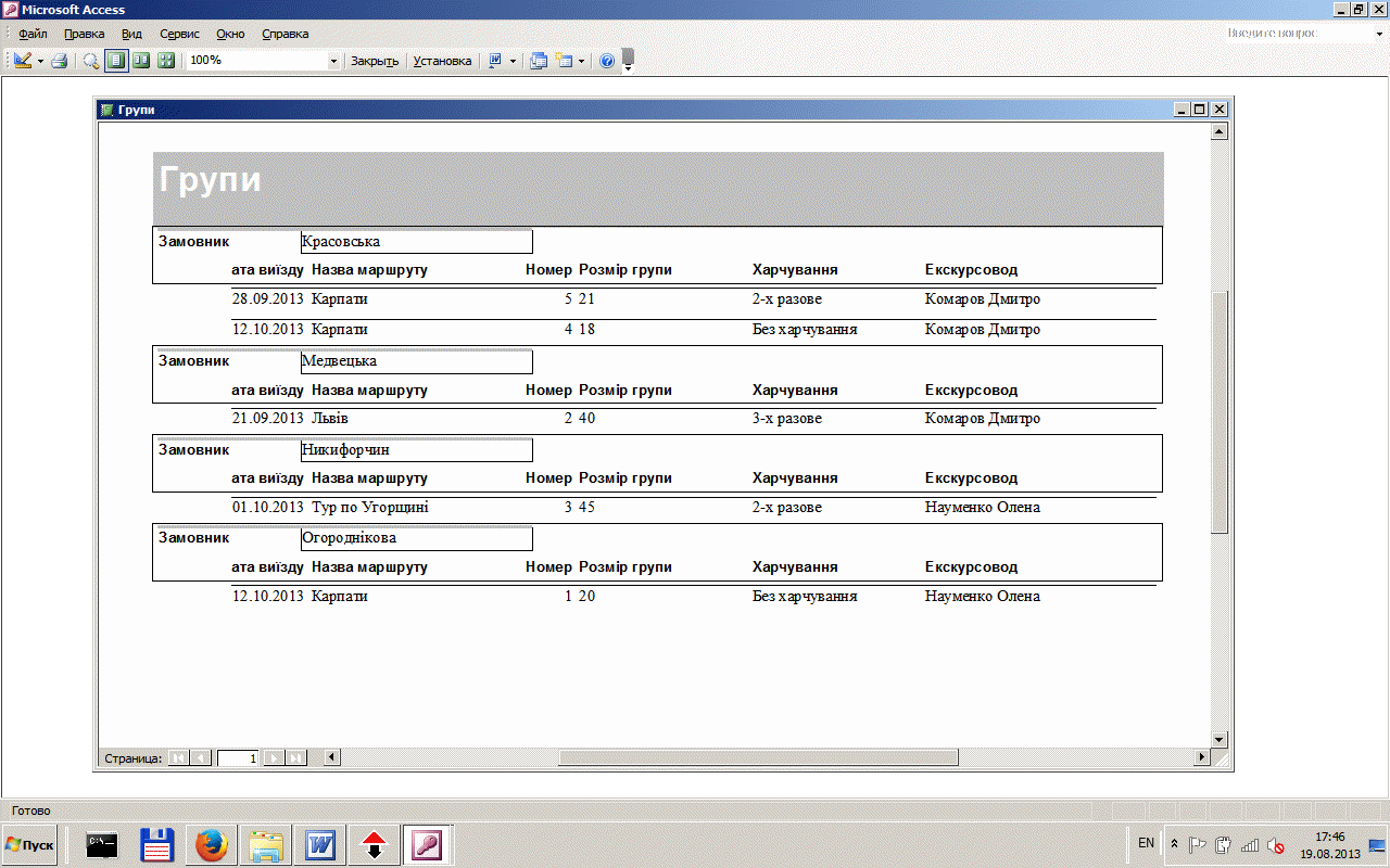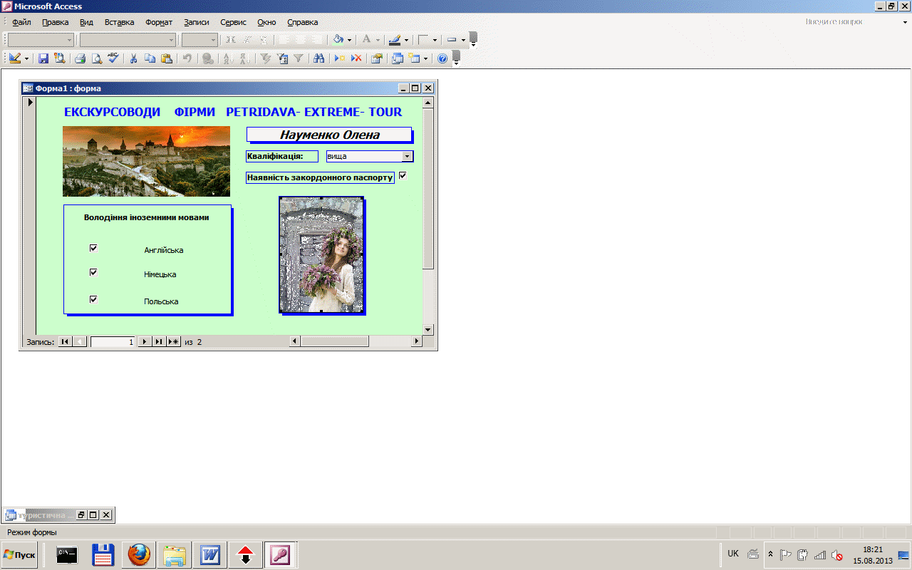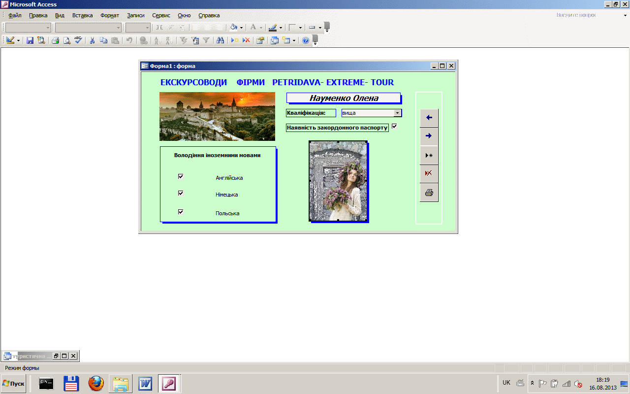 Відредагувати в режимі конструктора форму Екскурсоводи по зразку