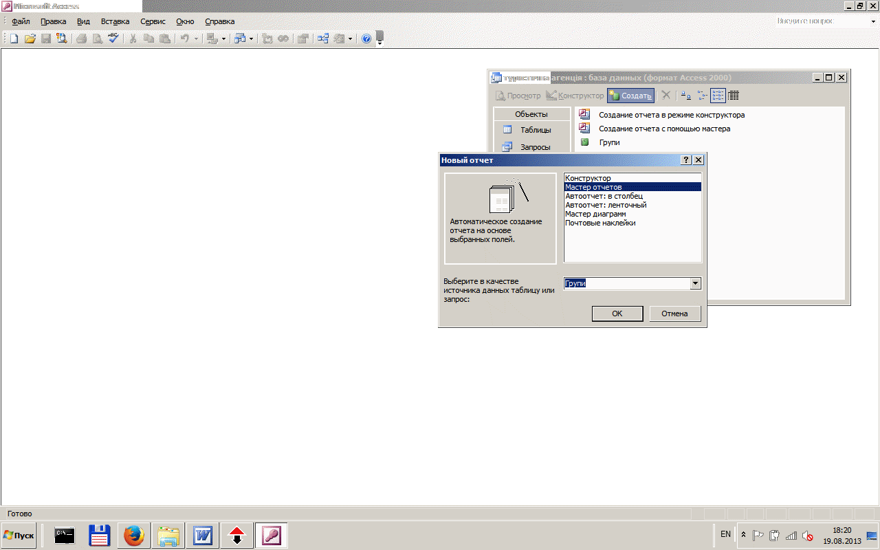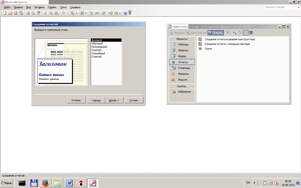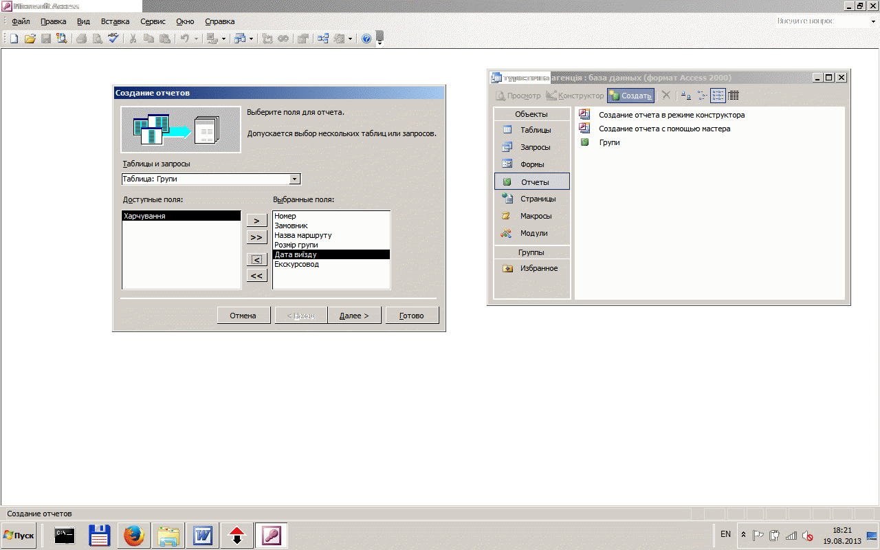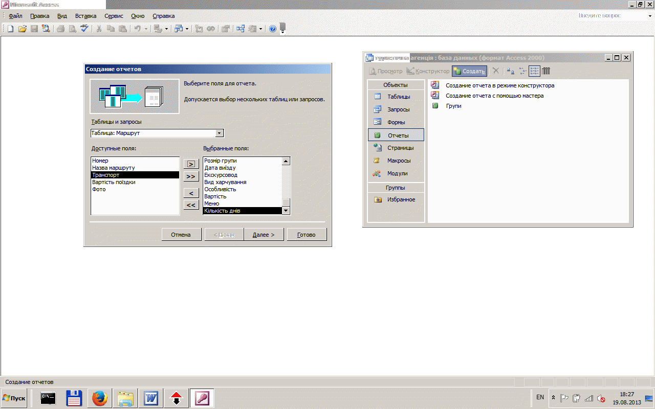 Мета: навчитись створювати звіти та редагувати їх в режимі конструктора