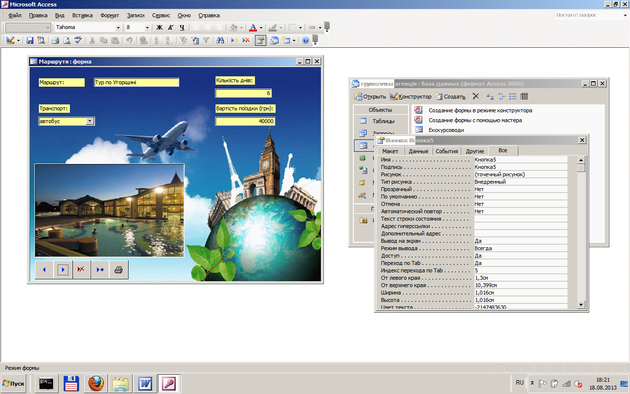 Мета: отримати практичні навички по створенню, редагуванню та форматуванню форм. Ознайомитись з режимом конструктора.
