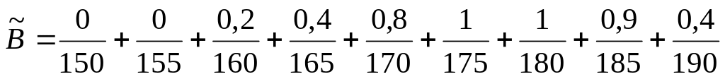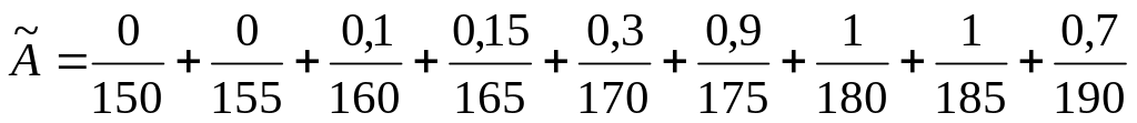 Приклад 5.1.1. Визначити за допомогою нечіткої множини поняття ”людина середнього зросту ” , задавши універсум множиною U = {150, 155, 160,… 190} (зріст заданий у см).