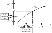 Пояснення. Для всіх х, що містяться поруч із точкою х=а, значення функції f(х) лежать біля А.