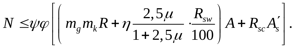 Расчет конструкций из кирпичной кладки, усиленной обоймами, при центральном и внецентренном сжатии при эксцентриситетах, не выходящих за пределы ядра сечения при стальной обойме, производится по формуле: