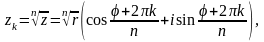 4. Для извлечения корня n-й степени из комплексного числа используется вторая формула Муавра: