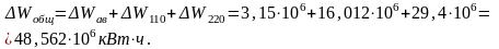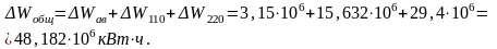 Годовые потери электроэнергии в трехобмоточных трехфазных автотрансформаторах: