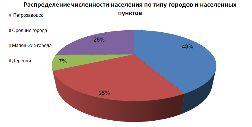 Процент жителей в маленьких городов к общему числу жителей Карелии |