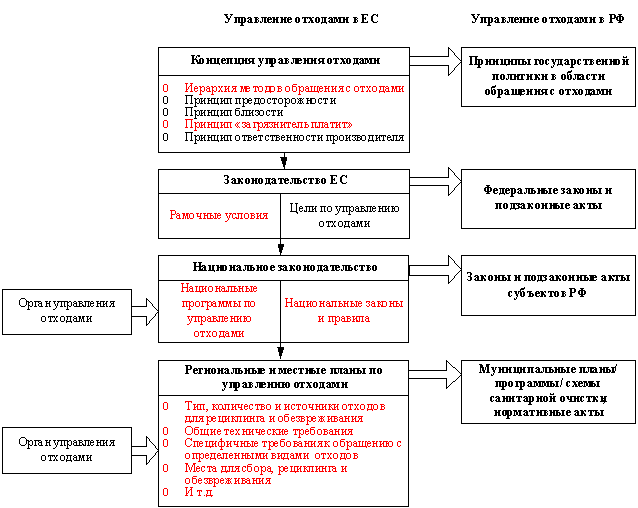 Рис. 6.2. Система управления отходами в ЕС и РФ.